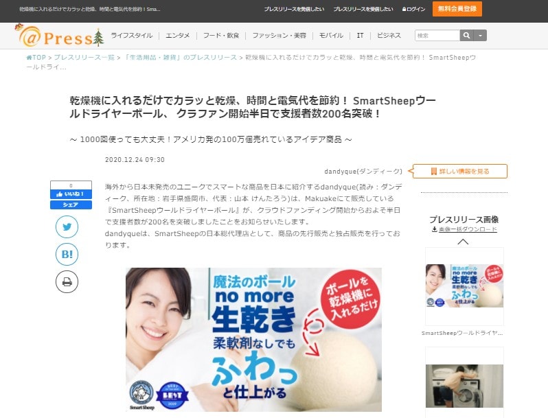 Smartsheepドライヤーボール プレスリリースを行いました