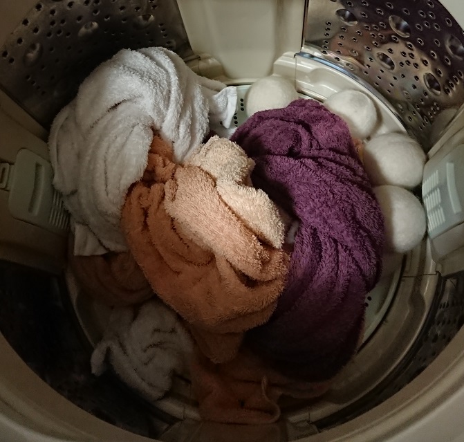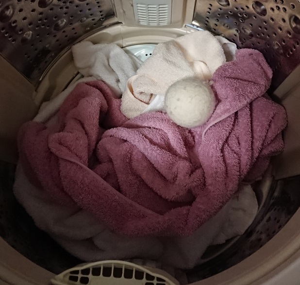 縦型の洗濯機は、普段の乾燥も、たまにうまくいかないことがあって、そんな時は洗濯物がうまく回転していないことが多いのです。ドラム式と違って、ボールがポンポン跳ねながら回転するというのも厳しそう。