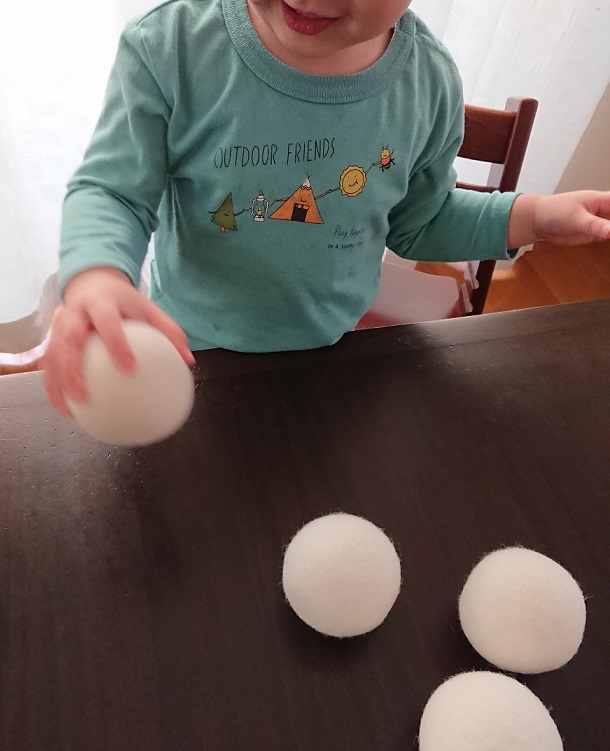 でも、3-5㎏の洗濯物にボール2-3個でよいとのことなので、ひとまず遊んでおいて頂くことに。(めちゃめちゃ気に入っているやないか…)