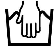 下の画像のように、桶のマークに手がある洗濯表示になります。